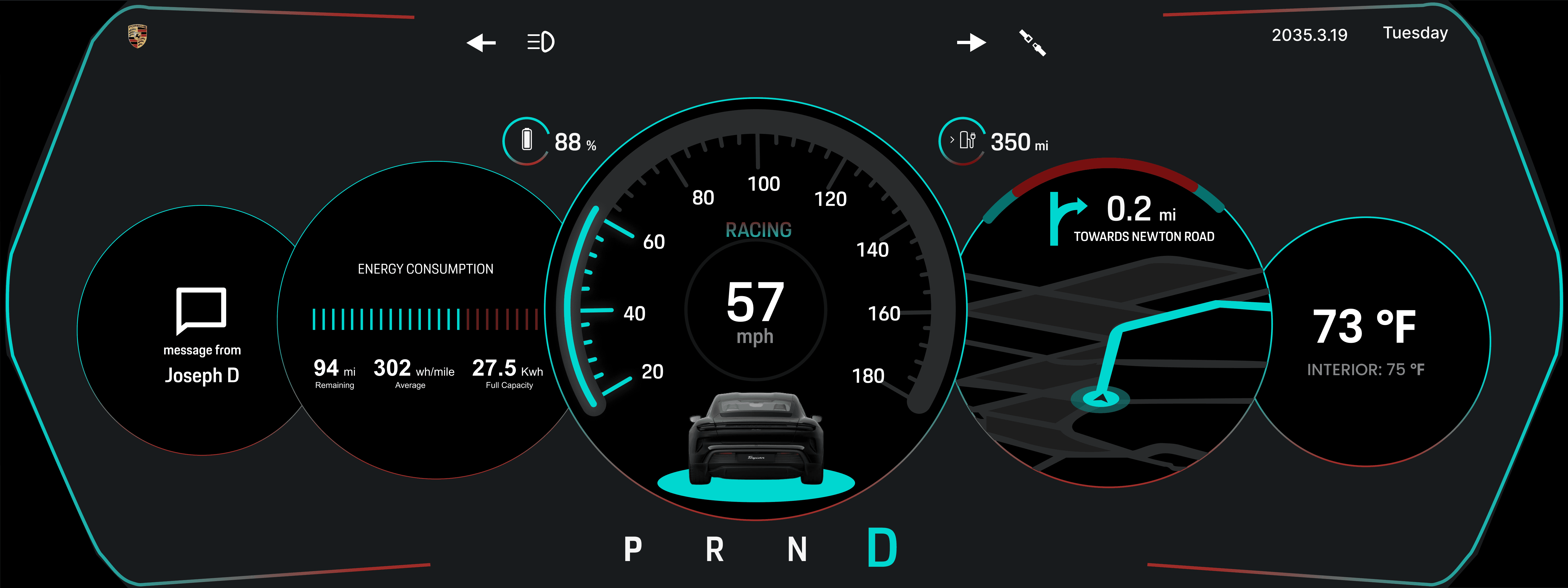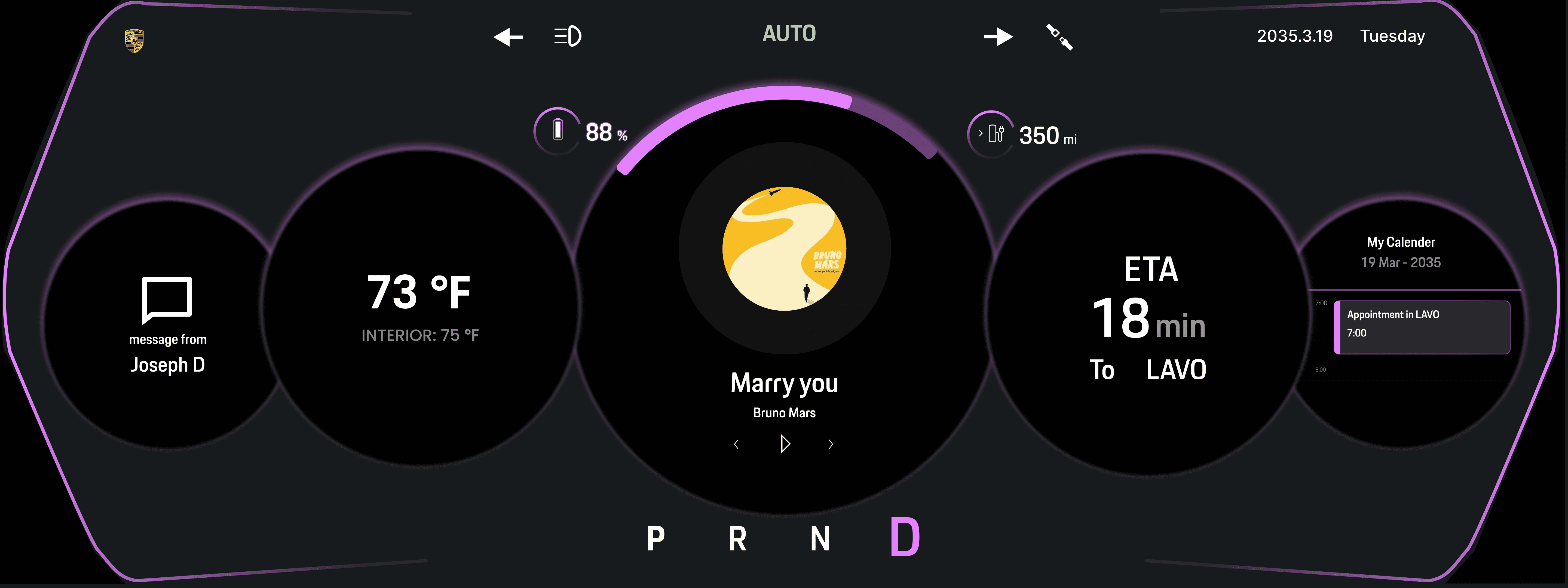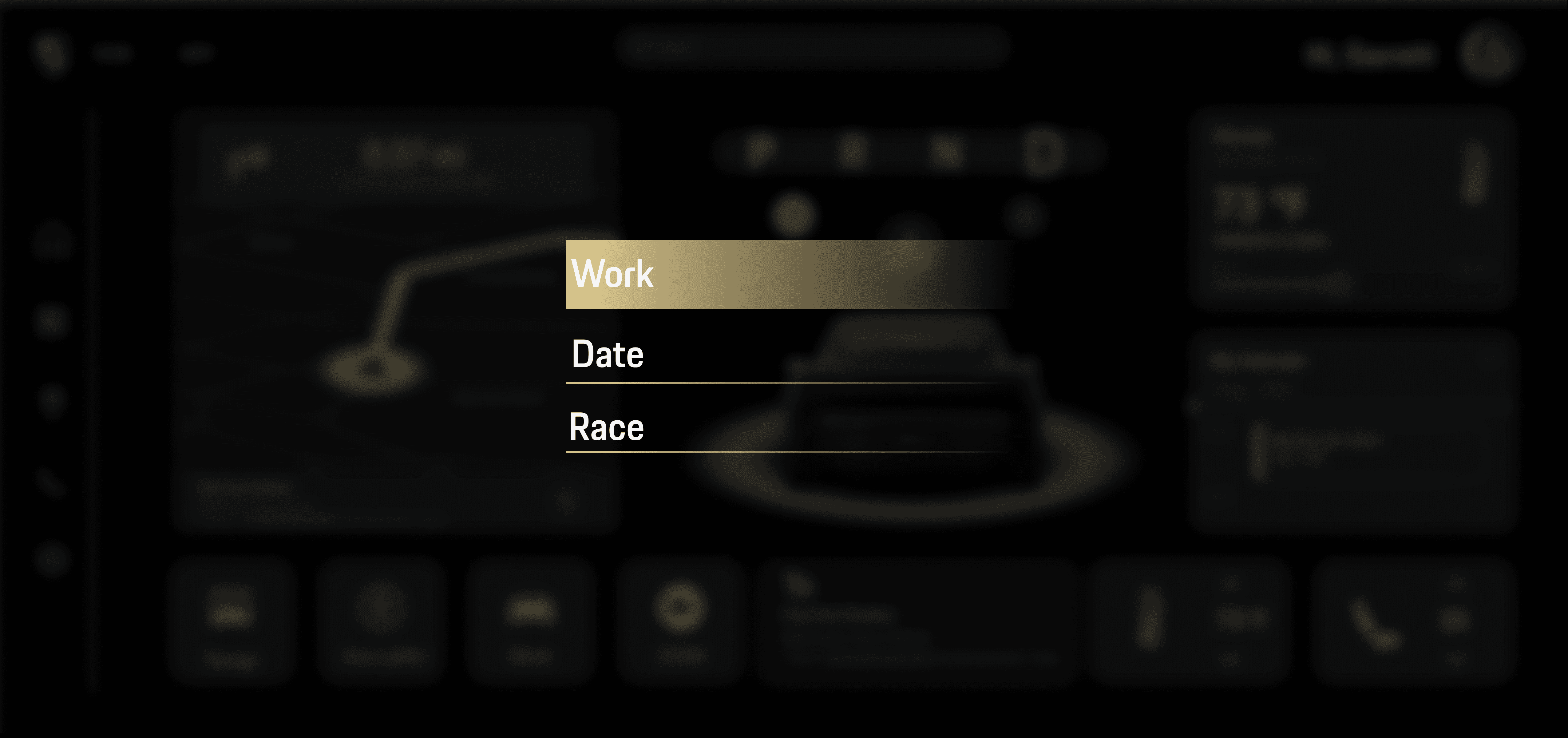 We will create a persona to represent an entrepreneurial boss in 2035, which also aligns with Porsche's customer base. We will conceptualize what this customer needs from Porsche, whether it is emotional or functional value. At the same time, we also want to emphasize the Porsche identity in the ui.