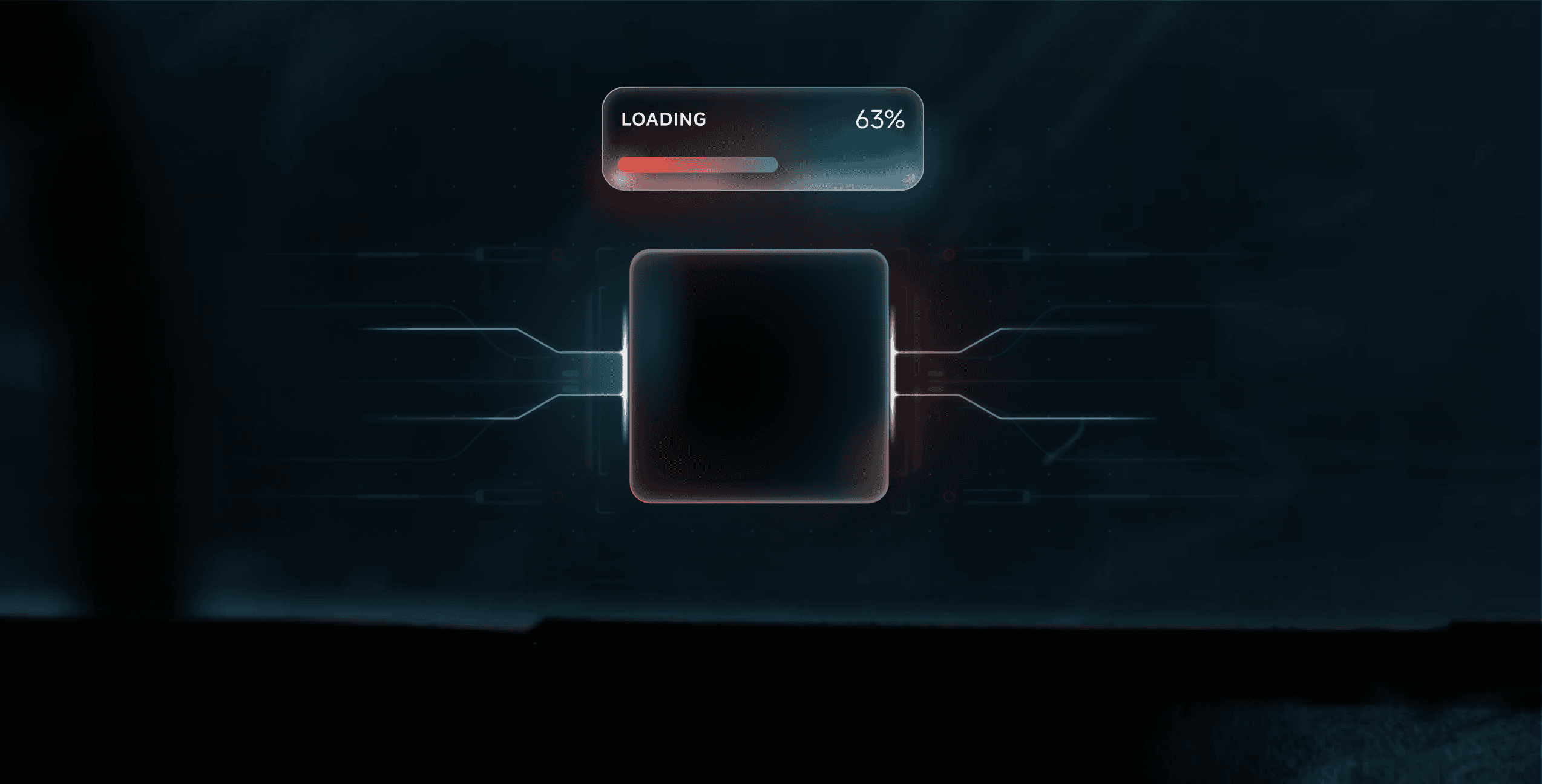 A navigation departure screen highlighting “MOUNTAIN” with a central beam and wireframe terrain. A floating sphere supports main interaction, while side cards show recent destinations. The dark HUD keeps the layout minimal and focused.