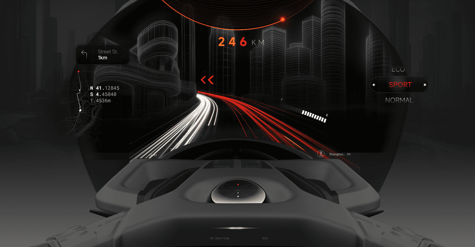 This is the concept vehicle project I worked on during my internship at Segway. The project envisioned a two-wheeled concept vehicle for use in a microfilm produced by the company, set in the year 2050. For this project, I was tasked with researching and designing transportation methods for 2050, along with the in-vehicle HMI. Additionally, I designed the interfaces and operational workflows for both a manually driven two-wheeled motorcycle and an autonomous capsule-shaped travel pod.