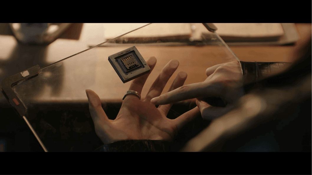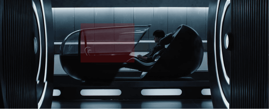 This scene is used in the movie's plot to depict Character 1 using a plugin to forcibly breach the user's autonomous capsule-type travel pod.